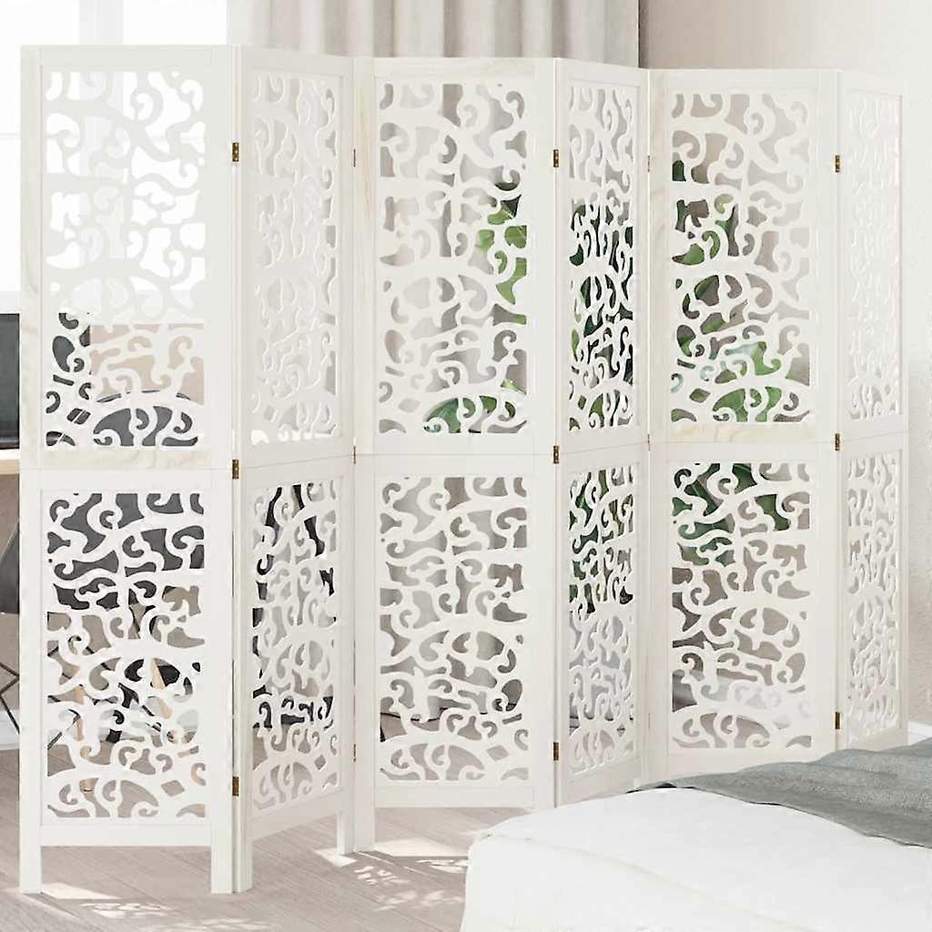 6-tlg. Raumteiler Weiß Massivholz Paulownia