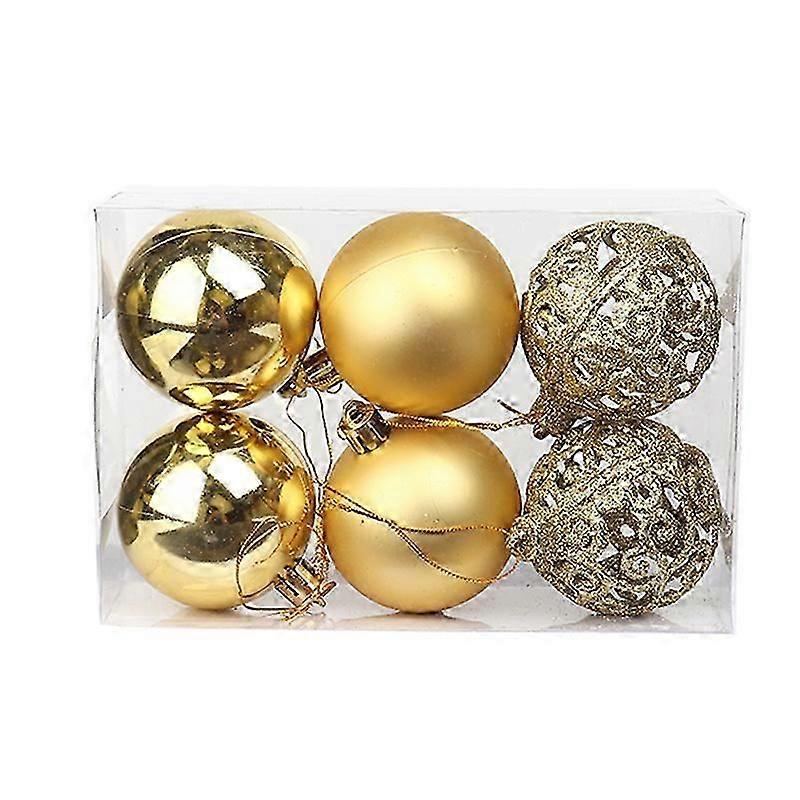 6 Pieces Gold 6cm Christmas Ball Ornaments Plastic Shatterproof Decorative Balls Christmas Tree Decorations Hanging Baubles for Christmas Decoration