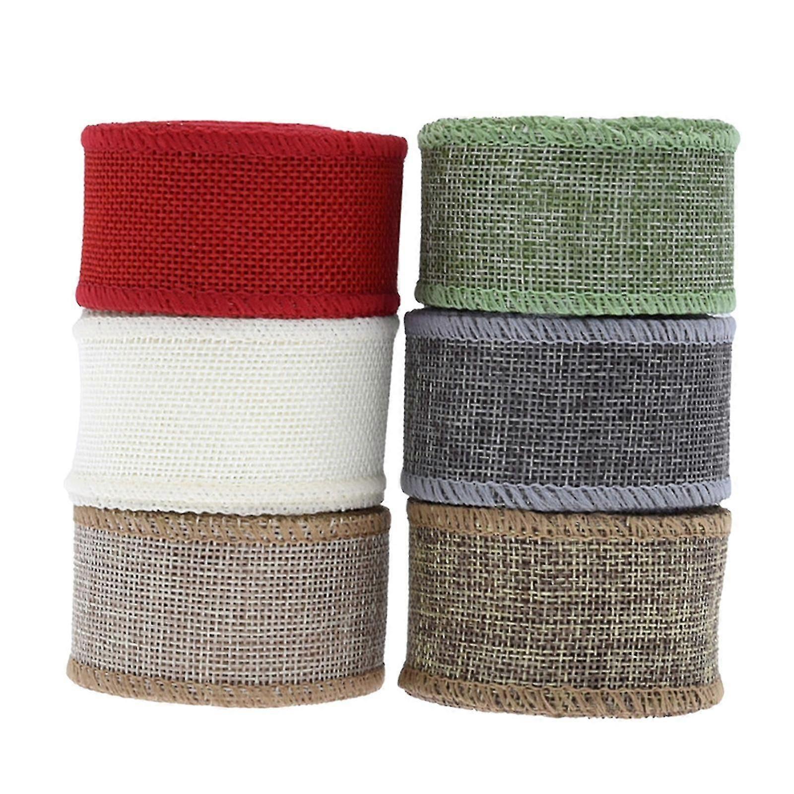 6 Rolls Burlap Ribbon for Wreath, Crafts, Fall, Holiday, Wedding Decoration,