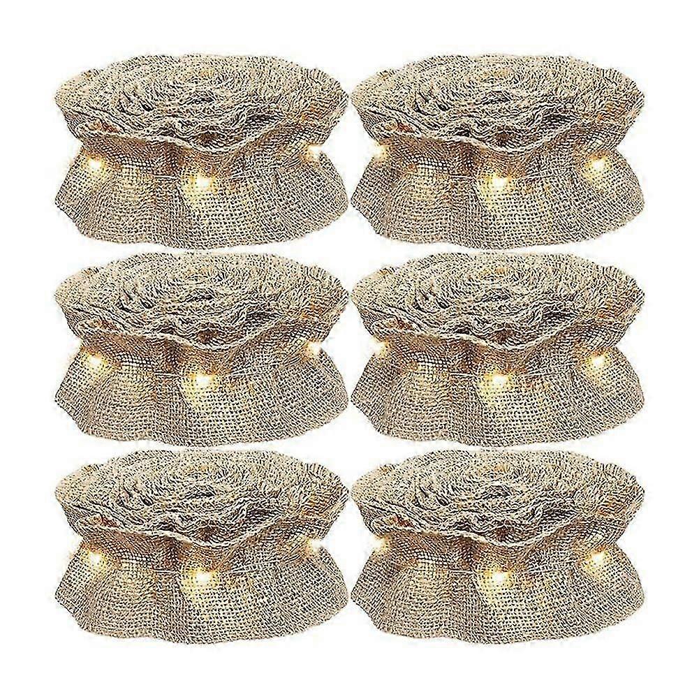 6 Rolls LED Rustic Christmas Tree Garland Ribbon Craft Brown
