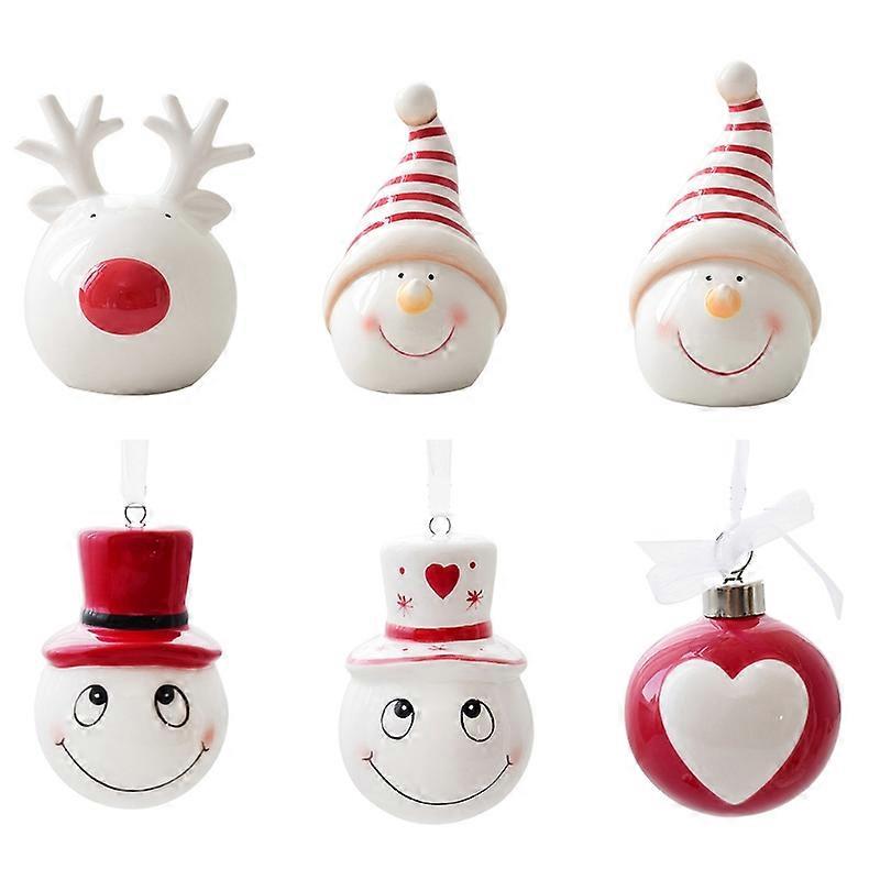 6 Types Ceramic Creative Christmas Snowman Desktop Small Elk Deco Ornaments