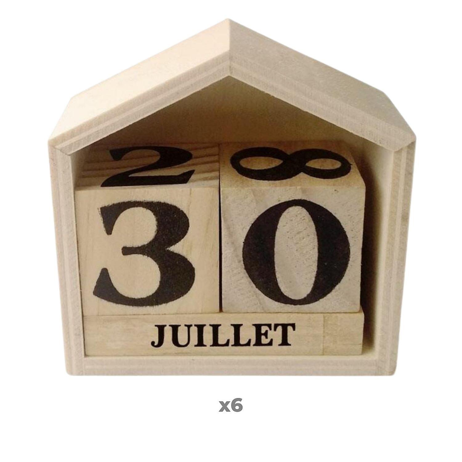 6 wooden house perpetual calendars - 7.3 x 8 x 3.4 cm