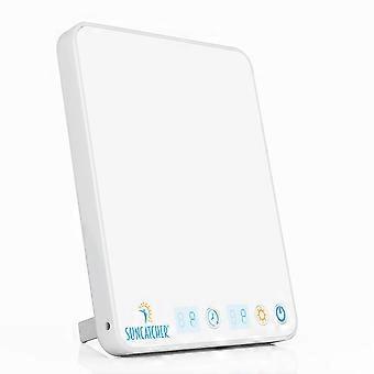 SUNCATCHER LED Therapy Lights help people of all ages fight fatigue and increase alertness during the long winter months. SUNCATCHER uses LED technology that helps people regain focus when there is a lack of sunshine and natural light commonly known as the winter blues. The Plus model light therapy lamp delivers up to 10,000 LUX* of light to maintain energy and productivity lost due to disruptions in your circadian rhythm that occurs from inadequate access to natural daylight. The Plus model offers three light intensities – 10,000 LUX, 7,500 LUX and 5,000 LUX– to maximize your comfort to help regulate your light intake. Customize your sessions with the included timer by using different intensities and different times of light exposure throughout the day in your home, office or hotel. Great for travel and home use, the Plus model can be positioned on a surface or mounted on a wall for customizable light sessions. The 100 LEDs last up to 50,000 hours for silent and flicker-free light and are UV-Free 10,000 LUX 3 Light intensities; 10,000, 7,500 & 5,000 Timer Control (90, 60, 30 & 15 minutes) High quality lens reduces glard & eye fatigue Great for travel, home or office Uses LED light from 100 LED's that lasts up to 50,000 hours UV-Free Wall mount or position on surface