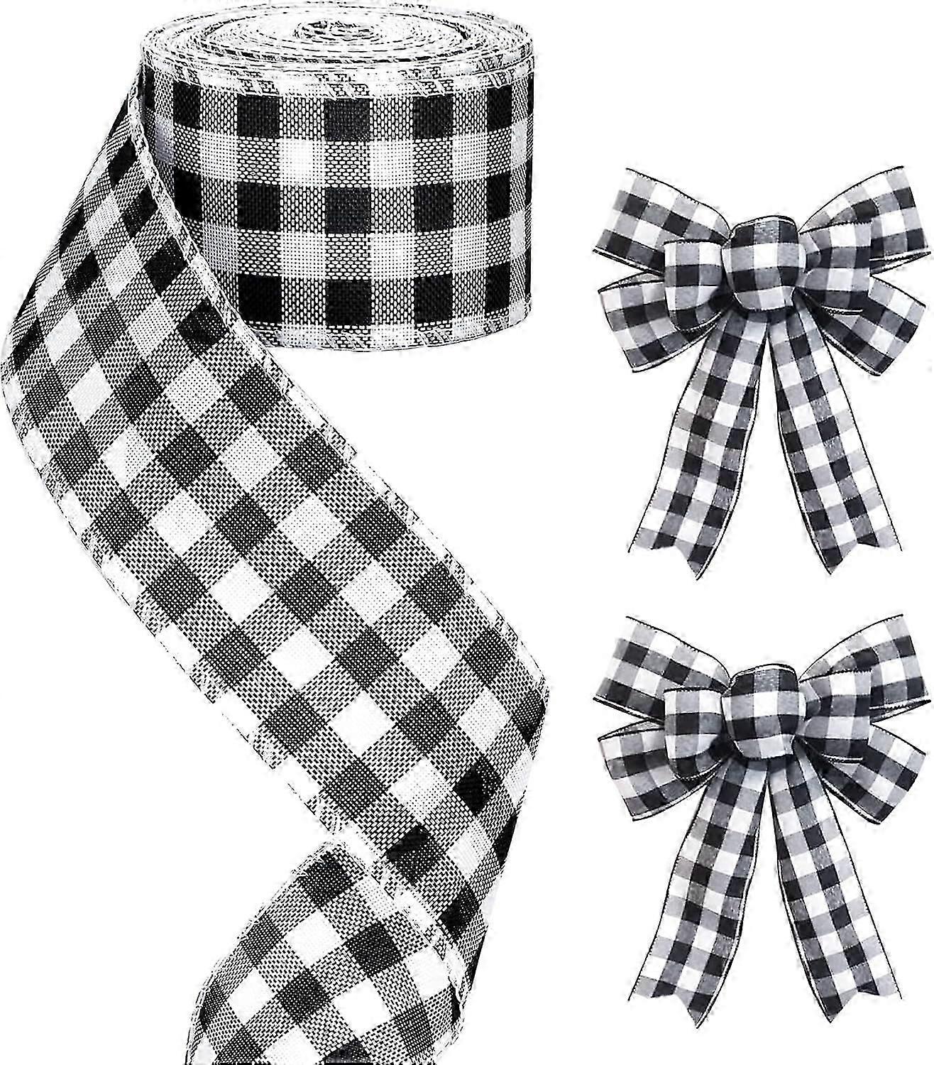 60mm Black and White Gingham Ribbon, Christmas Wired Ribbon, 6M Wired Edge Hessian Ribbon, Christmas Ribbon for Gift Wrapping,for Christmas Wreaths