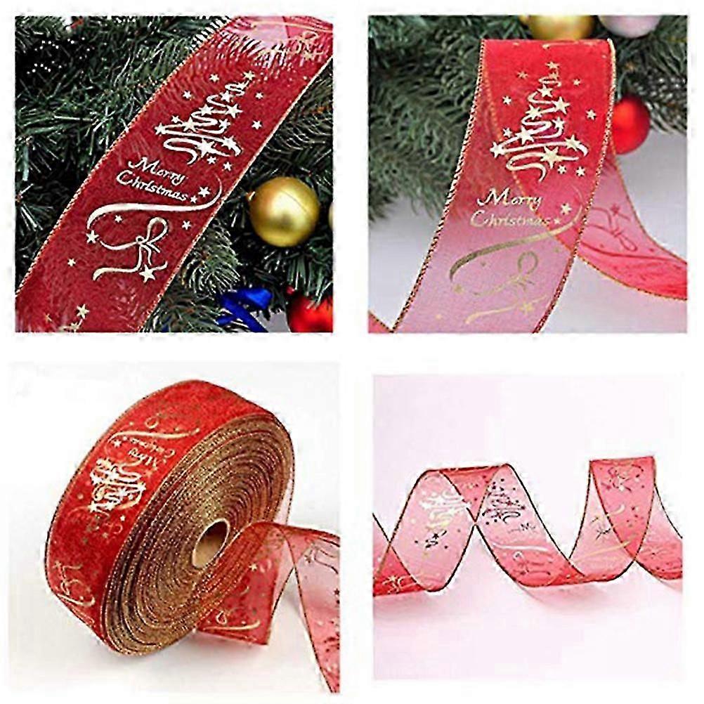6.3cm x 200cm Christmas Gauze Transparent Printed Decorative Ribbon