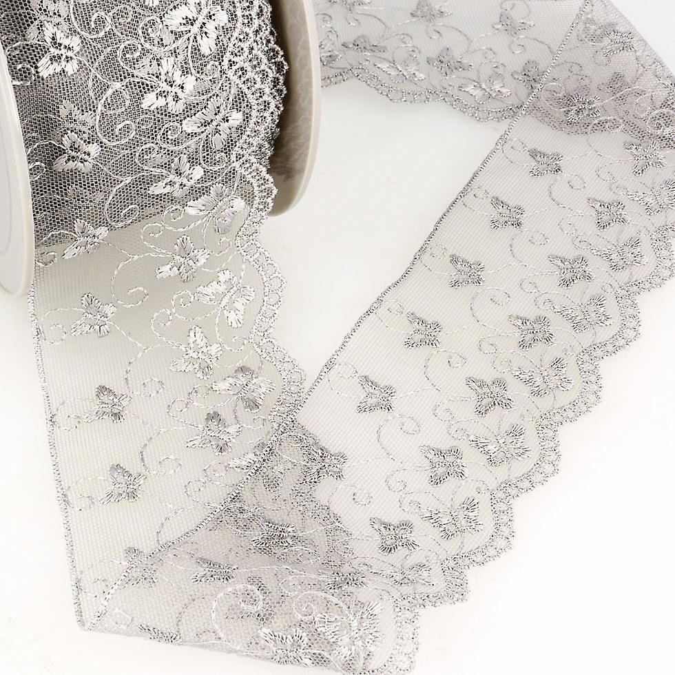 65mm Stephanoise Embroidery Tulle Lace Trim Light Grey - per metre