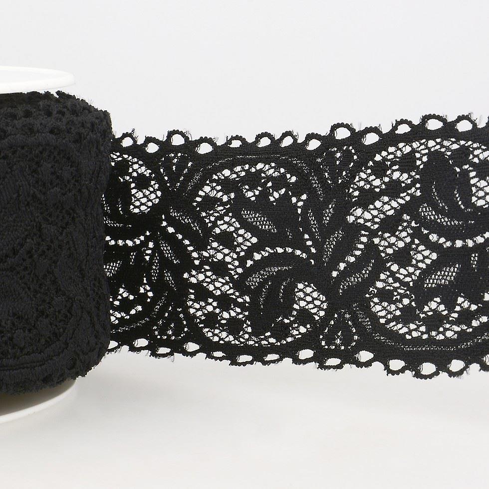 65mm Stephanoise Stretch Lace Trim Black - per metre