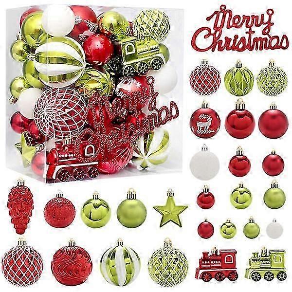65pcs Christmas tree ornaments, red, green and white shatterproof baubles
