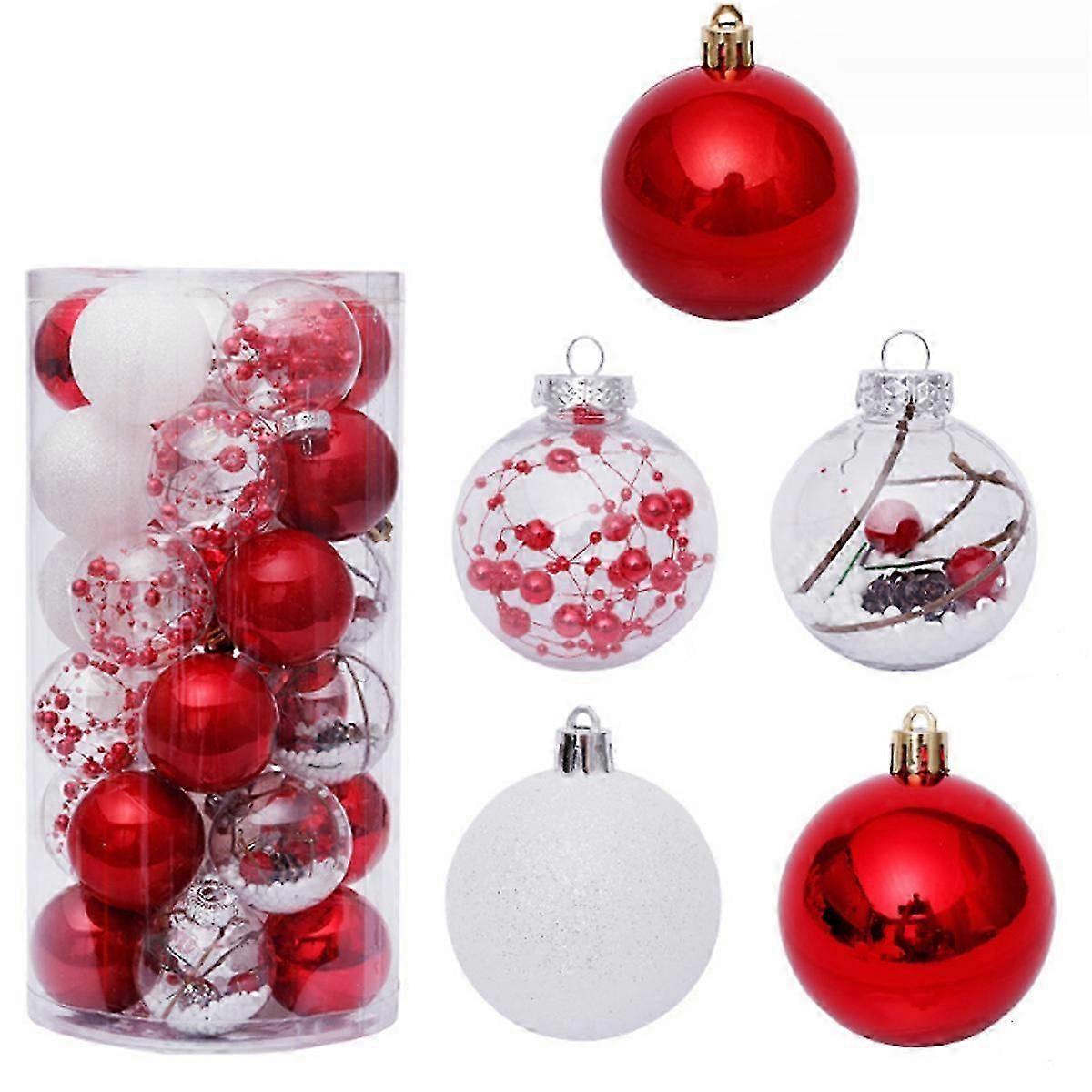 Material: PlasticSize: 6cmProducts Size: 32*15.9*15.9cmColor: Red Green White/Red gold/Pink/Red WhiteQuantity: 30 PieceProducts Include: 30x Christmas Ball1. 30pcs 6cm/2.36 Christmas balls, each bauble is decorated differently with designs including shiny, matte, glitter, frosted and mottled patterns.2. All bauble ornaments are equipped with caps and string hangers to make the decoration of your Christmas tree easier.Makes a great addition to your Christmas and holiday decoration.3. Home dcor, weddings, engagements, anniversaries, party, as well as Christmas tree decoration and table centerpieces.4. These ornaments are made of durable and eco-friendly plastic to provide excellent shatterproof performance when compared with traditional glass products.5. Shatterproof ornaments combine the beauty and luster of real glass with the unbreakable practicality of plastic. Safe for children and pets.