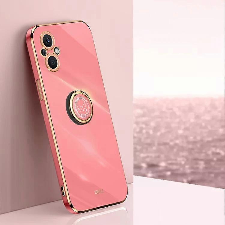 6D Electroplate TPU Phone Case with Ring Holder for OPPO A96-Hawthorn Red Hawthorn Red
