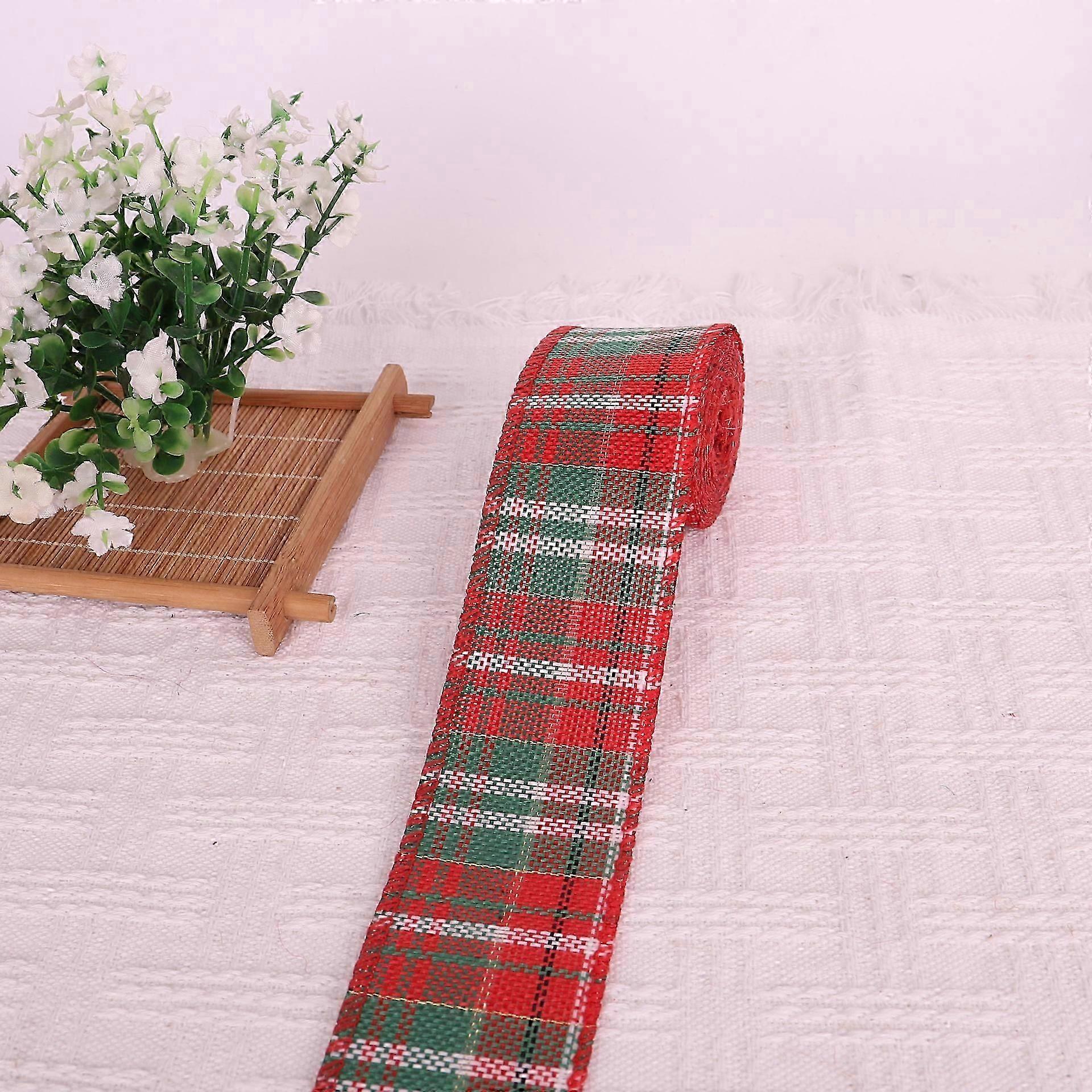 6M Red and Green Burlap Ribbon 6cm Wide Christmas Buffalo Plaid Ribbon Wired Christmas Ribbon,Christmas Gift Ribbon for Bow,Christmas Wedding Decorat