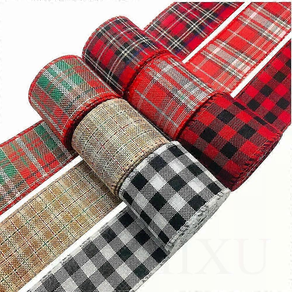 6M/Roll Craft Ribbon Imitation Hemp Ribbon Wire Wire Edge Linen Ribbon Christmas Decoration Red and Green Snowflake Plaid Ribbon