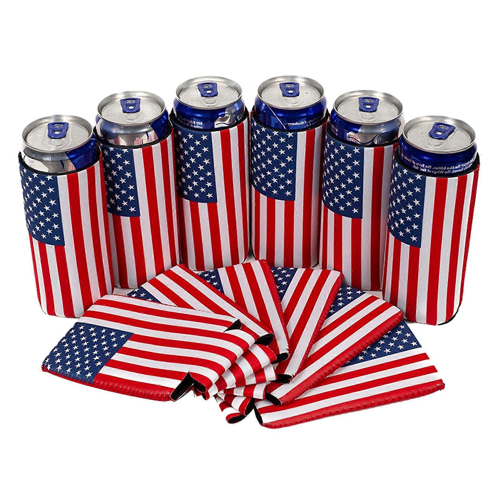 6Pcs America's Flag Skinny Can Cooler Sleeves 12oz Beer Soda Cover Coolies Cooler Bags Slim Can Coozie Can Cooler Sleeve
