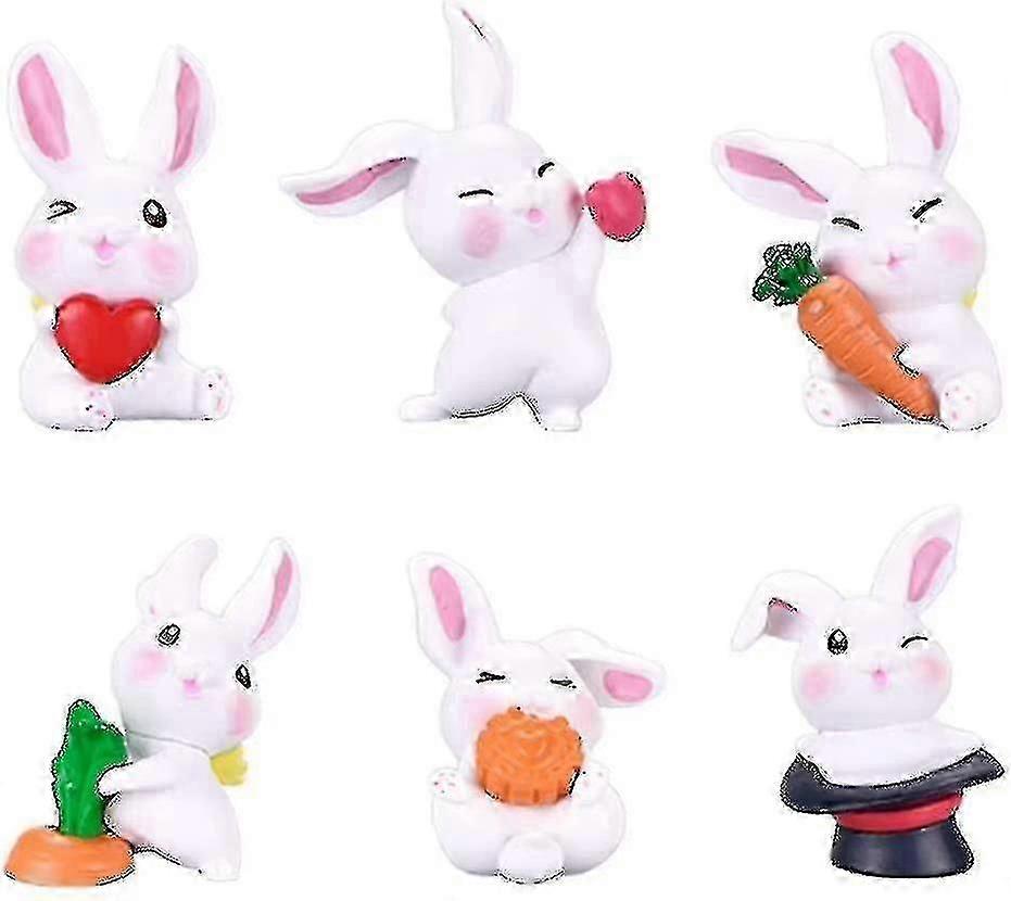 6pcs Cake Topper Rabbit Ornaments Chic Rabbits Garden Figurines Decoration, Pvc Easter Bunny Table