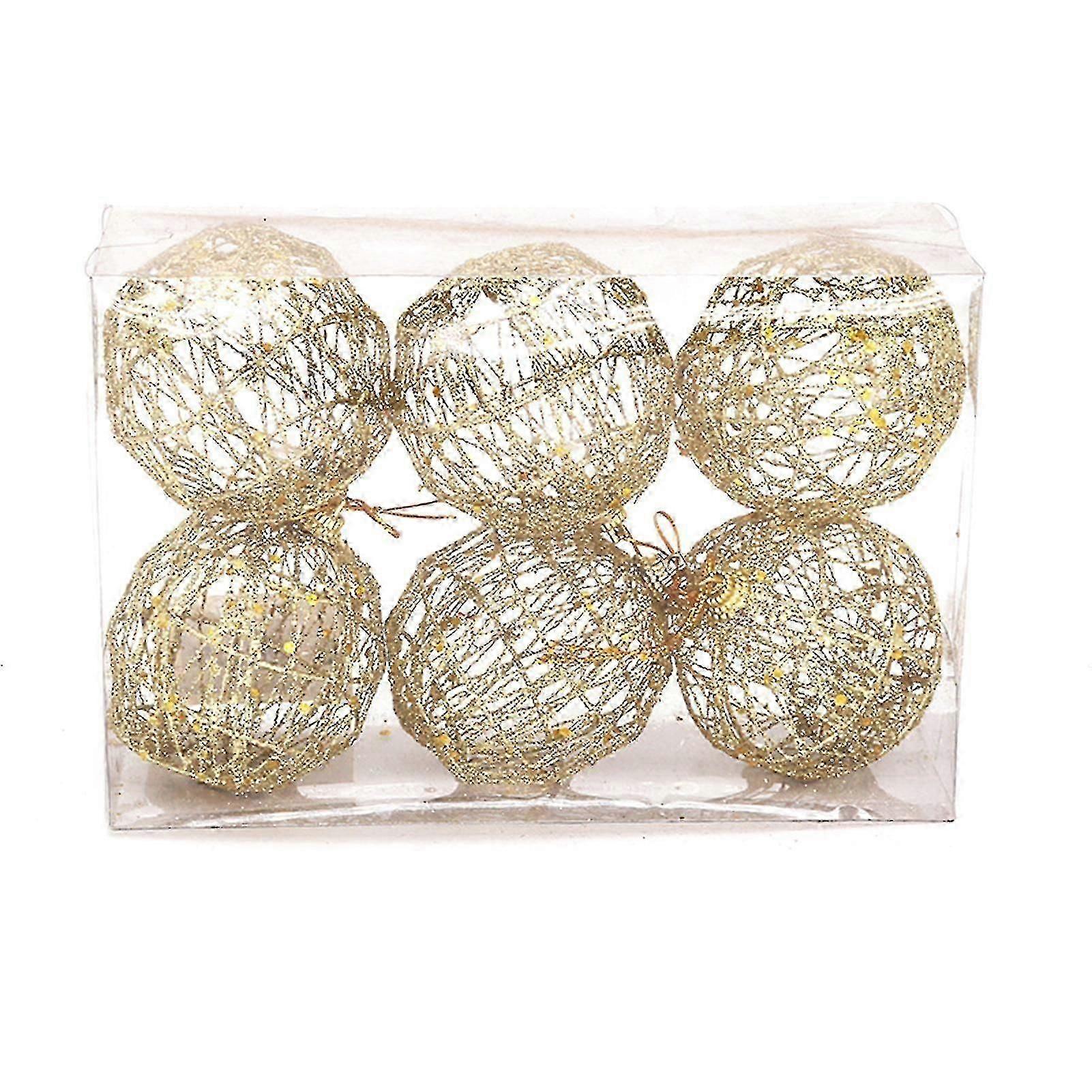 6pcs Christmas Ball With Lanyard Hollow-carved Design Round Creative Christmas Ball Decoration For Party