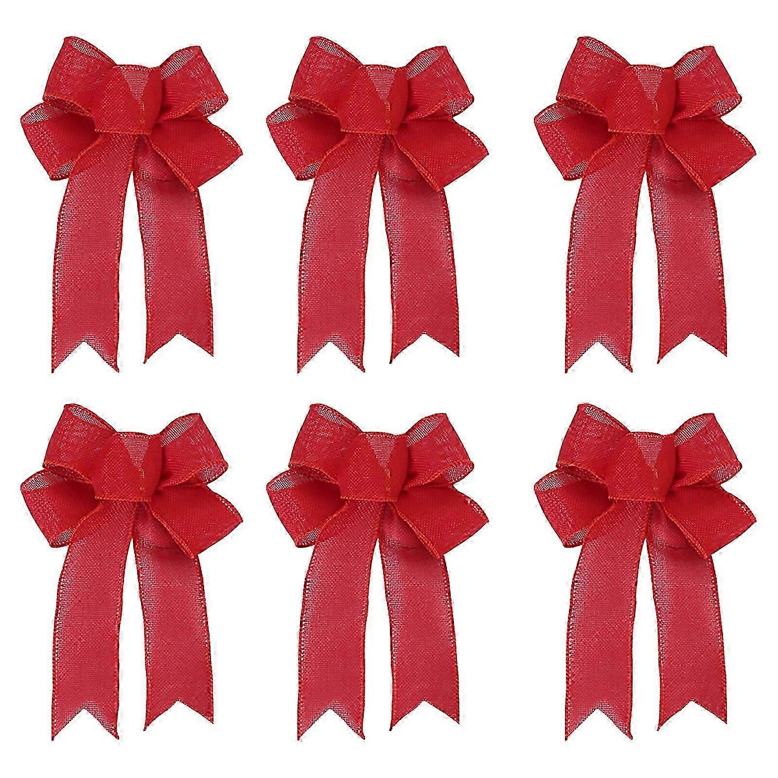 6PCS Christmas Bows Large Christmas Bows Xmas Wreath Ribbon Bows Tree Bows Decorative Burlap Bows Decorations Ornaments For Christmas New Year Red