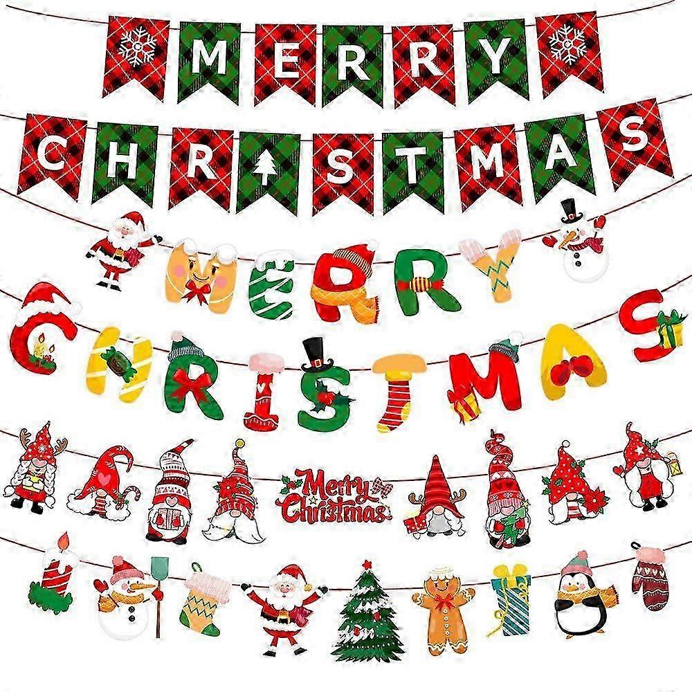 6Pcs Christmas Bunting Banner - Christmas Ornaments Pull Flag - Christmas Elk Christmas Tree Christmas Stockings and Christmas English Banner 10 Feet