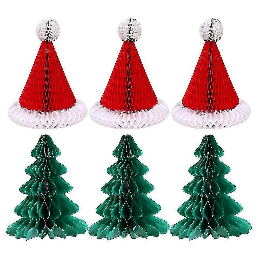 6pcs Christmas Decoration Honeycomb Paper Christmas Hats Christmas Tree Ornaments