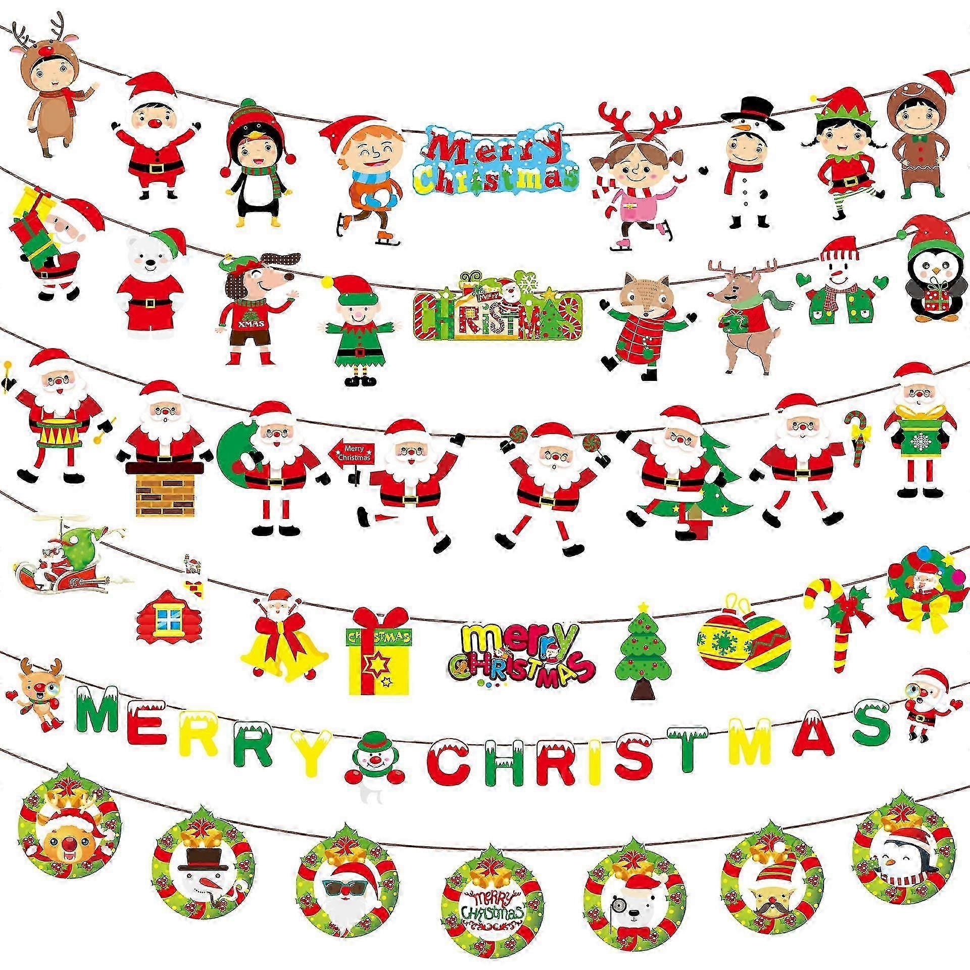 6pcs Christmas Decorations Christmas Paper Pull Flag Festive Party Decoration Hanging Flag Shopping Mall Home Hanging Decoration Pull Flower