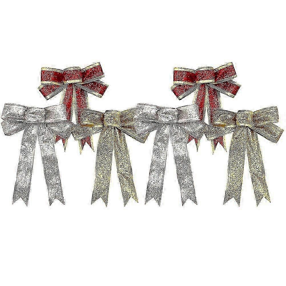 6Pcs Glitter Christmas Bows Christmas Tree Decoration Bows Glitter Decorative Bows