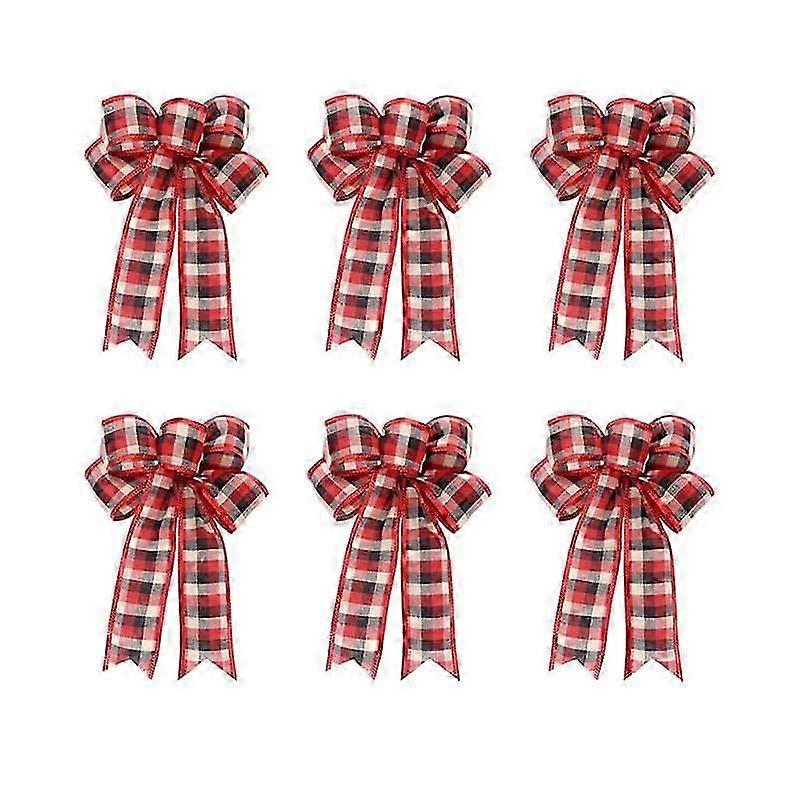 6PCS Large Bows Christmas Tree Bowknot Decor,Xmas Tree Ornaments, Christmas Wreaths Accessories Decorative,Gift Ribbon Bows Ornaments(A)