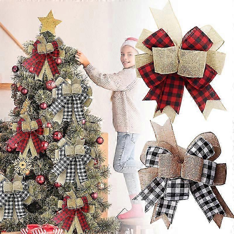 6pcs Large Christmas Bows Wreath Decoration,Buffalo Plaid Xmas Tree Topper Ornament,Red Xmas Decorative Bow Garland for Indoor Outdoor,Front Door,Merr