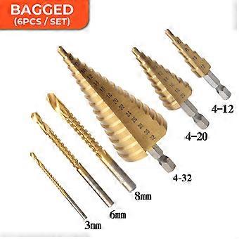 6Pcs Step Drill Bits Metric Spiral Coils Pagoda Shape Hole Cutter 4-12/4-20/ 4-32mm HSS Steel Cone Drill Bit Set Step Drill Bit