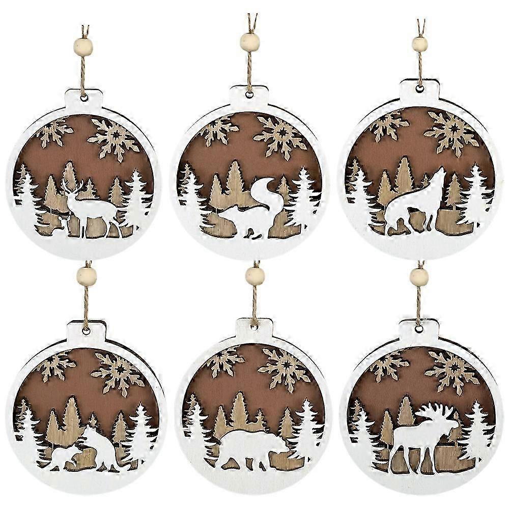 6pcs Wooden Carving Animal Ornaments Christmas Tree Hanging Decors Holiday Tree Decors