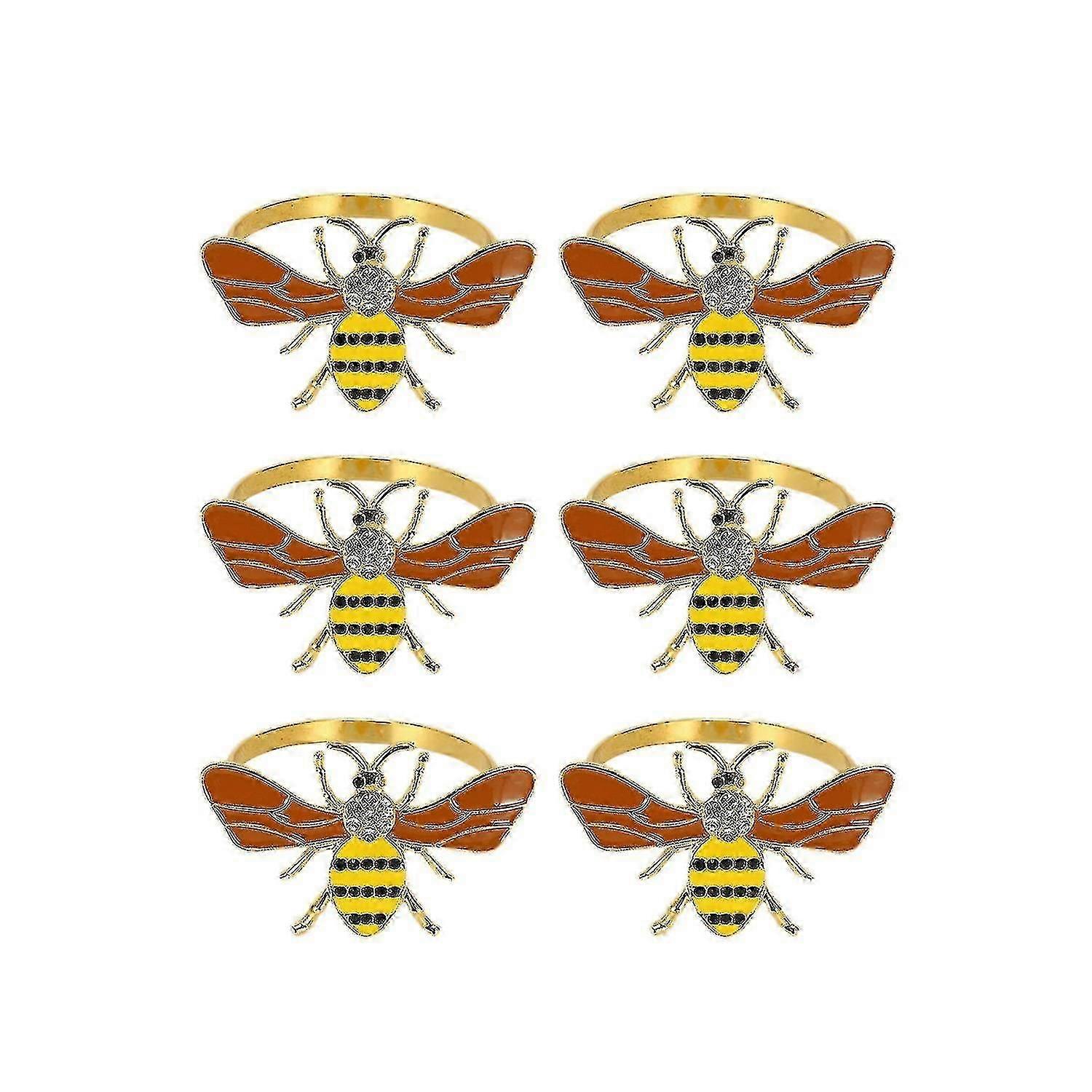 6pcs Yellow Bee Design Metal Napkin Ring Towel Buckle Bee Napkin Holder Wedding Party Holiday Hotel