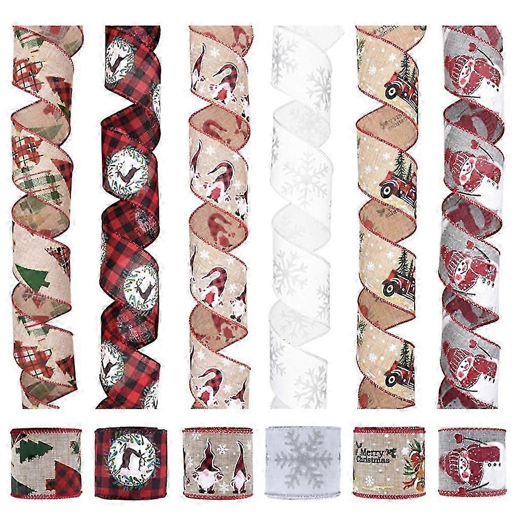 6Rolls Christams Ribbon Printed Polyester Ribbon For Christmas Decoration Gift Wrapping DIY Sewing Fabric for Package