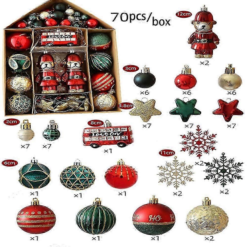 70pcs Christmas Baubles 2-12cm Automobile,Christmas Tree Hanging Decoration,Christmas Tree Star Ornament,House Shaped Kraft Paper Packing Gift Box
