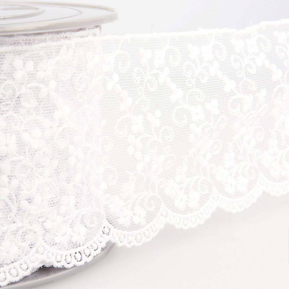 75mm Stephanoise Embroidery Tulle Lace Trim White - per metre