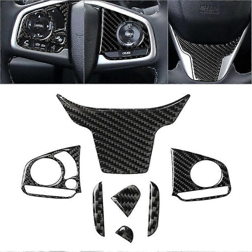 7Pcs Carbon Fiber Interior Steering Wheel Sticker Upholstery For Honda Civic 10th 2016 2017 2018 2019 Auto Styling Accessories