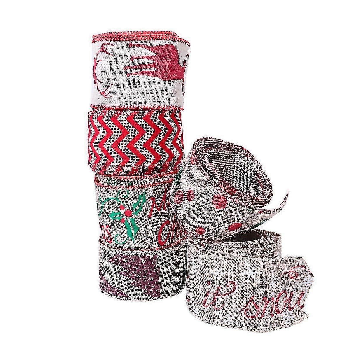 7pcs Christmas Burlap Jute Burlap Rolls Hessian Ribbon Lovely Cartoon Printing Trim Ribbon For Christmas Party Decorations(mixed)