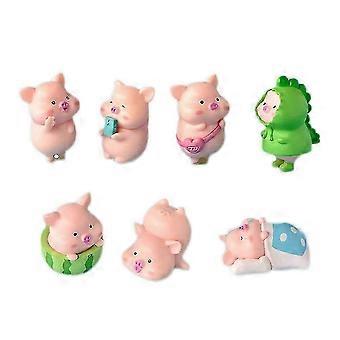 7Pcs Pig Plastic DIY Home Decoration Figurines Landscape Accessories Fairy Garden Miniatures Room Decor