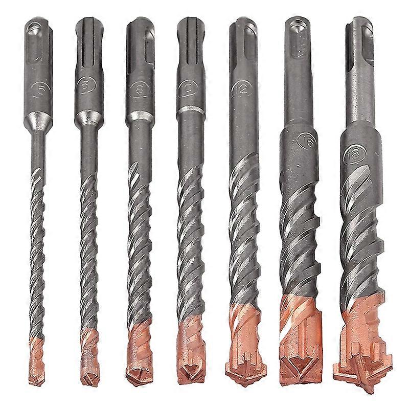 7pcs SDS Plus Hammer Drill Parts Set, (4-Flute) for Concrete Brick Block Stone Masonry and Granite
