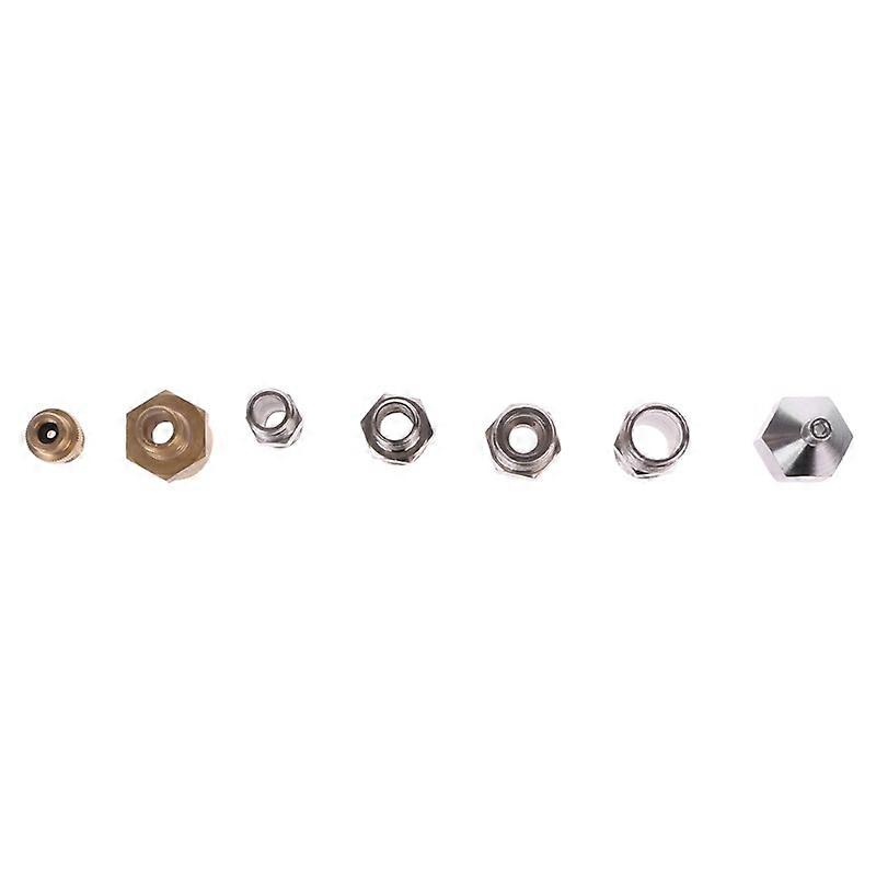 7Pcs/Kit Airbrush Kit with Adapter Connector for Compressor and Spray HoseOOTDTY Description:Features: Great Airbrush Connectors for Airbrush and Compressed Air Hose. Professional airbrush accessories, reliable and . The perfect airbrush adapter set. Handy airbrush tool with standard 7 types of 1/8" and 1/4" BSP male and female fittings. and easy to use. Specification:Type:A1-A7A1:M5-0.5 Female to 1/8" BSP MaleA2: 1/8" BSP Male to 1/8" BSP MaleA3: 1/8" BSP Male to 1/4" BSP MaleA4: 1/8" BSP Male to 1/4" BSP FemaleA5: 1/8" BSP Female to 1/4" BSP MaleA6: 1/4" BSP Male to 1/4" BSP MaleA7: 1/4" BSP Female to m5x0, 5 MaleSize: As pictures shown. (approx.)A1: 13x14mm (0.51x0.55" (D x H)A2: 12x17mm (0.47x0.67" (D x H)A3: 13x20mm (0.51x0.79" (D x H)A4: 16x21mm (0.51x0.83" (D x H)A5: 16x17mm (0.51x0.67" (D x H)A6: 14x22mm (0.55x0.87" (D x H)A7: 16x24mm (0.51x0.94" (D x H)Material: copper, ironColor: silver and goldQuantity: 1 setNote:Transition: 1cm=10mm=0.39 inchNo retail package. Please allow 1-3mm error due to manual measurement. Pls make sure you don't mind before you bid. Due to the difference between different monitors, the picture may not reflect the actual color of the item. Thank you!Package Included:1 Set (7pcs) x Airbrush Adapter (Other accessories shown in the picture are not included.)