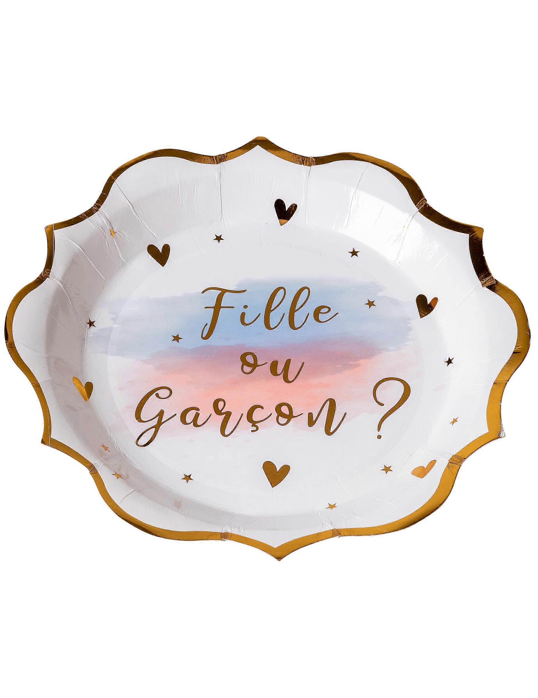 8 Assiettes en carton Fille ou Garçon rose bleu et or 23 cm