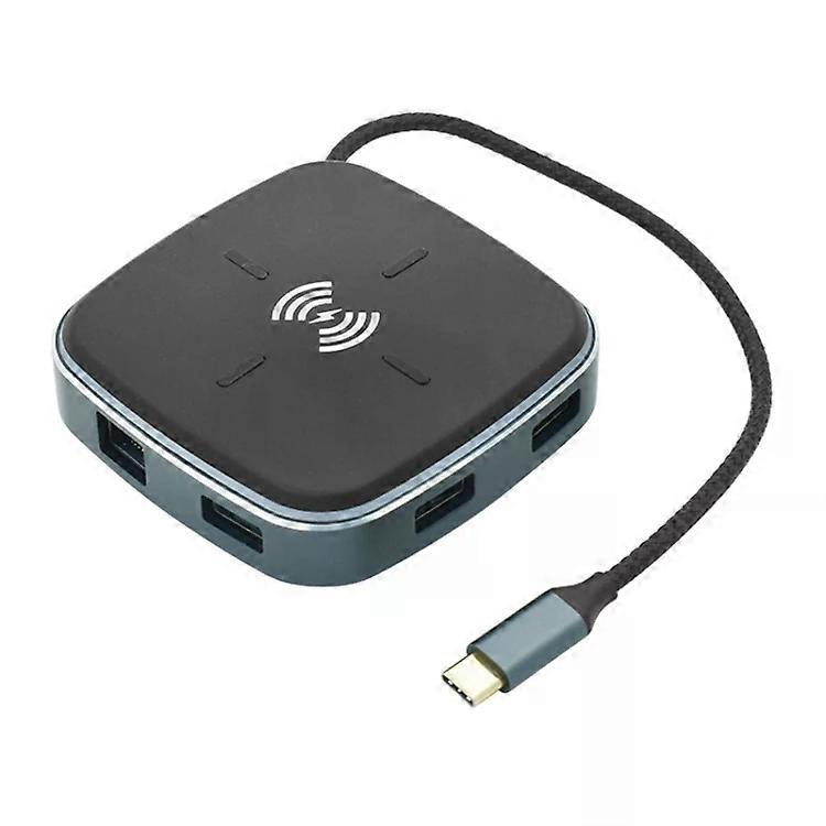 8-in-1 Type-C Hub Dock-Wireless Fast Charging,0.2m Cable -