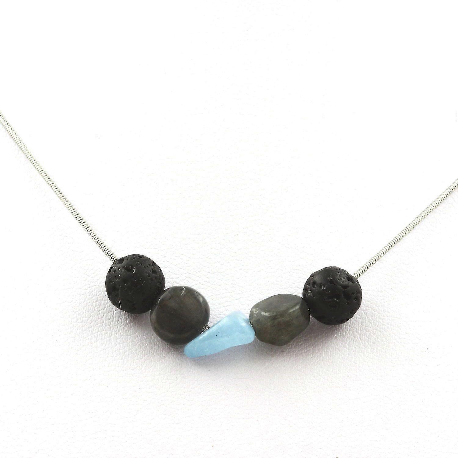 8 mm Lava bead necklace + Aquamarine from Brazil + Labradorite from Finland