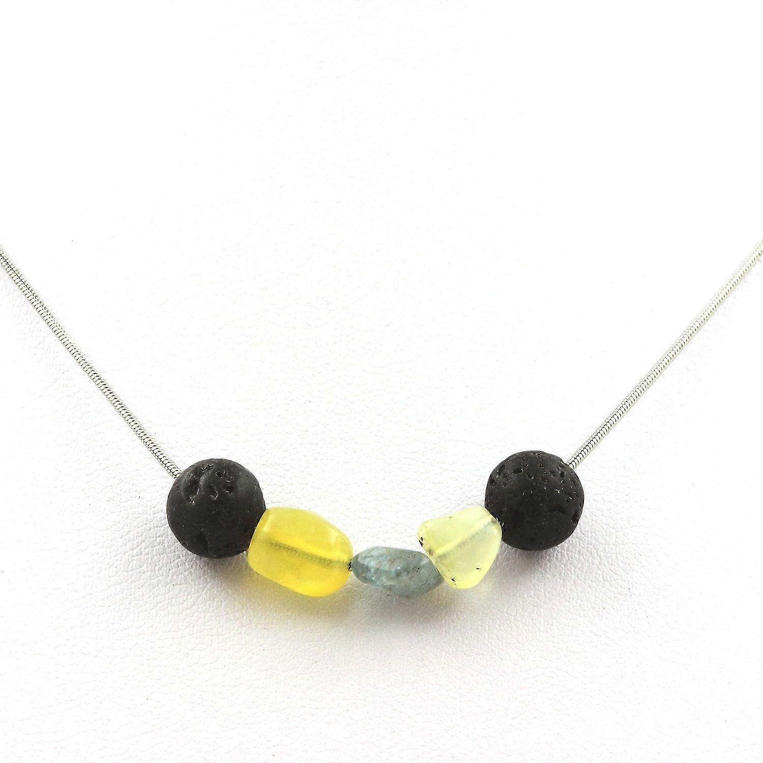 8 mm Lava bead necklace + Yellow Opal from Australia + Apatite from Brazil