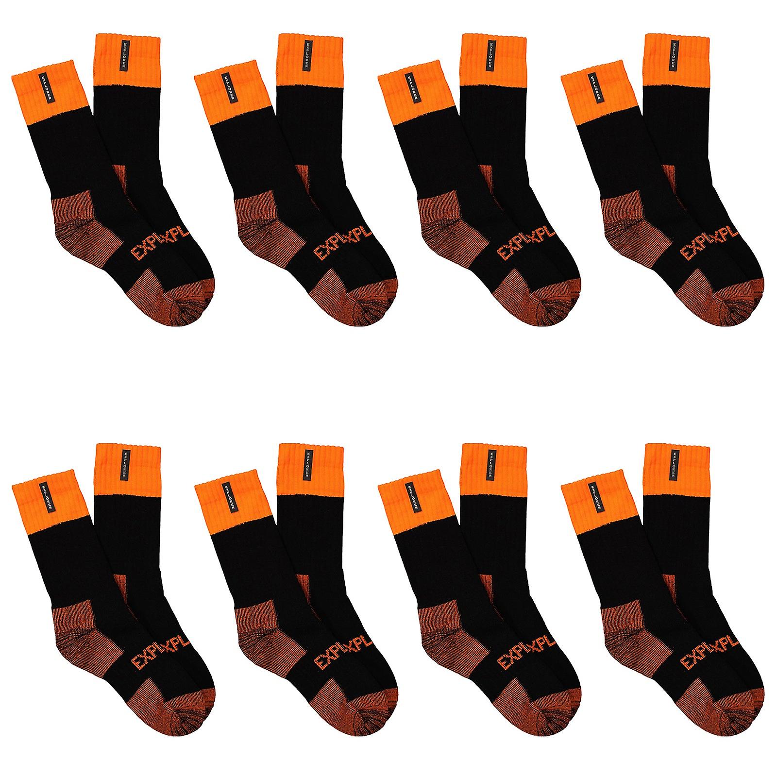 8 Pair Bonds Explorer Tough Work Crew Men Orange Thick Cotton Socks Synj2w Bulk