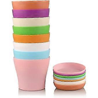 8 Pcs 14cm Small Plastic Colorful Plant Pots Flower Pots Indoor Plants Pots For Home Office , 8 Colors
