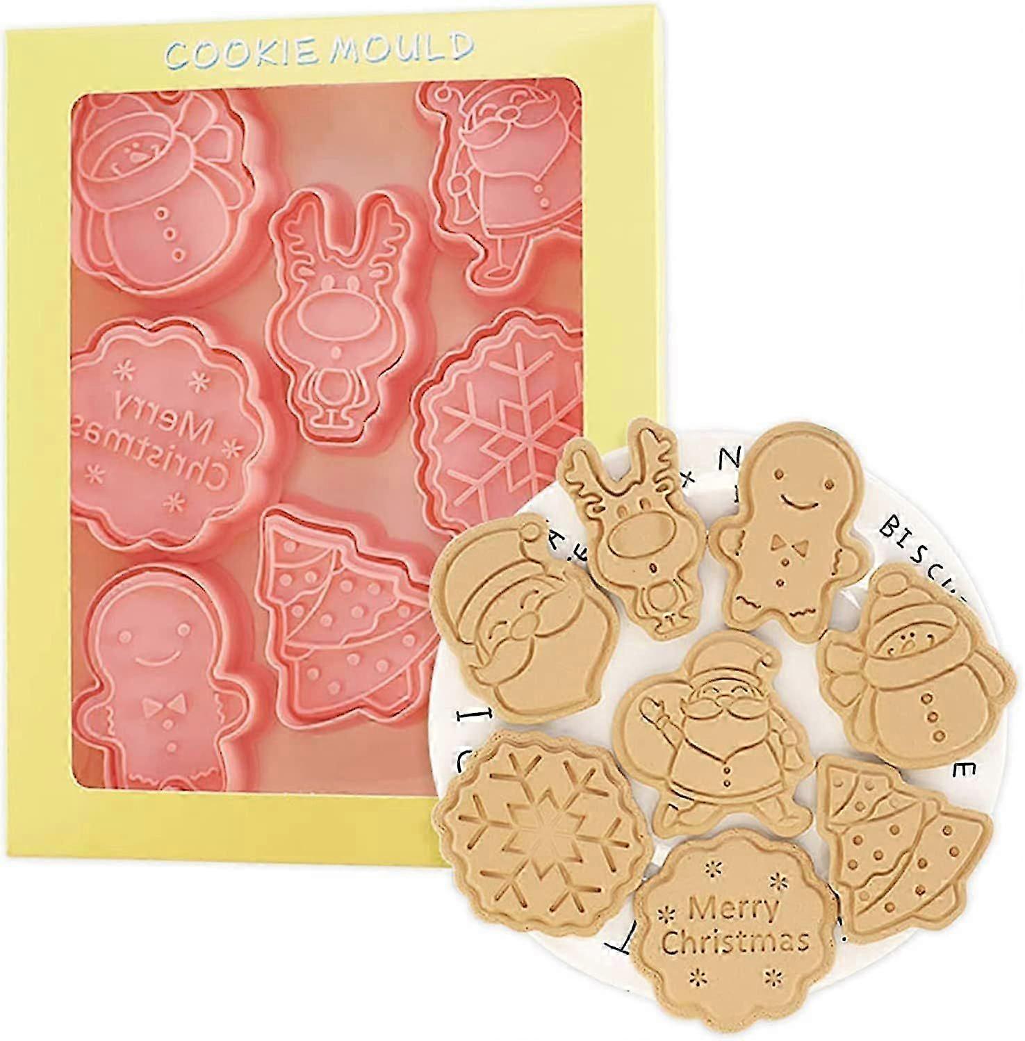 8 Pcs Christmas Cookie Cutter Set,Plastic Christmas Cookie Stamps (Christmas)