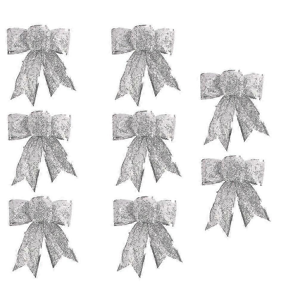8 Pcs Glitter Christmas Wreath Bow Christmas Tree Ornaments Bows For Christmas Party Decor