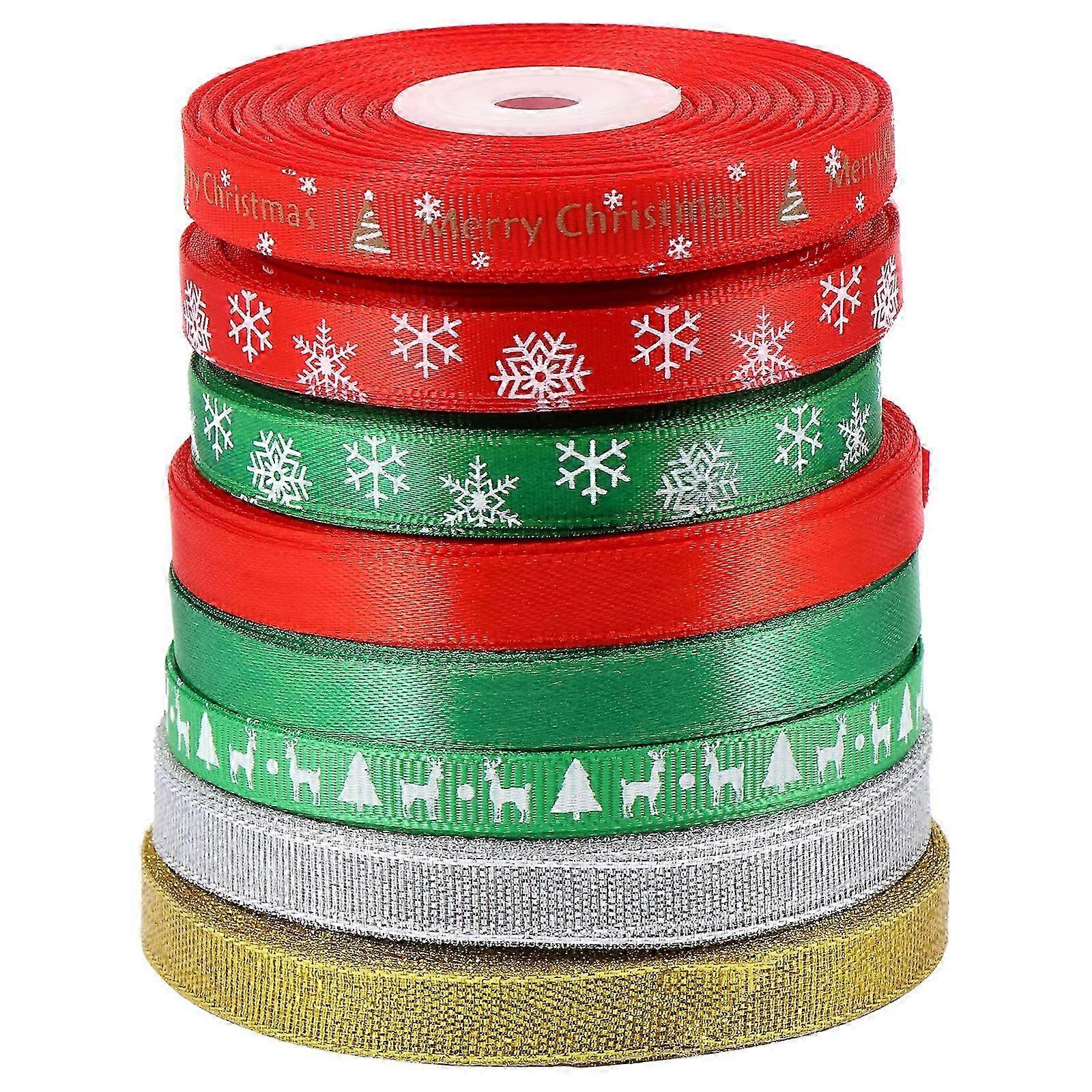 8 Rolls 25 Yards Snowflake Ribbon Xmas Ribbon Rolls Decorative Ribbon Band