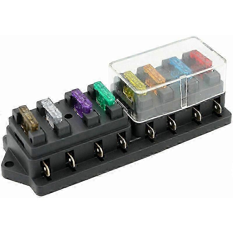 This fuse box is suitable for all kinds of automotive and marine applications, including 12v & 24v systems (maximum voltage 32V).8 Way Blade Fuse Fuse Box 8Pcs8 way fuse box holder with 5A, 7.5A, 10A, 15A, 20A, 25A, 30A, 35A standard fuses.Transparent plastic cover with button lock system, easy to use, splash-proof and dust-proof design.Widely used for car, boat, marine, caravan, boat and so on.Material: plastic, voltage: 24V and 12V (max 32v), current: 1~40A circuit/fuse, number of slots: 8, accepted fuse: standard blade fuse