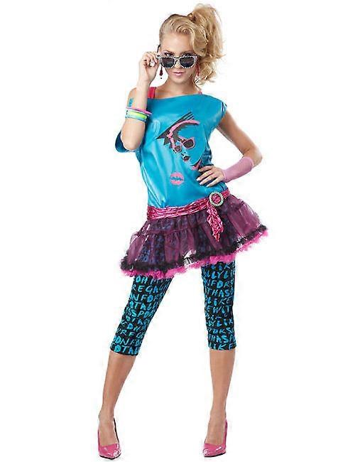 La reine du disco, ce sera vous Ce déguisement années 80 pour femme est composé d& 39;une robe, d& 39;un pantalon, d& 39;une brassière et d& 39;une ceinture (bijoux, lunettes et chaussures non inclus).   Ce déguisement au look des années 80 comporte une tunique bleue aux bretelles roses, une jupe rose cousue ainsi qu& 39;un pantalon serré descendant jusqu& 39;aux bas des genoux. Sur le pantalon, des mots sont imprimés en bleu vif sur fond noir. La ceinture rose ajoute une touche encore plus décontractée à la tenue.   Une très belle tenue des années 80 qui sera parfaite pour le Carnaval et autres fêtes à thème Accessoires inclus : Robe,Pantalon,Brassière,Ceinture, Matière : 100% polyester,