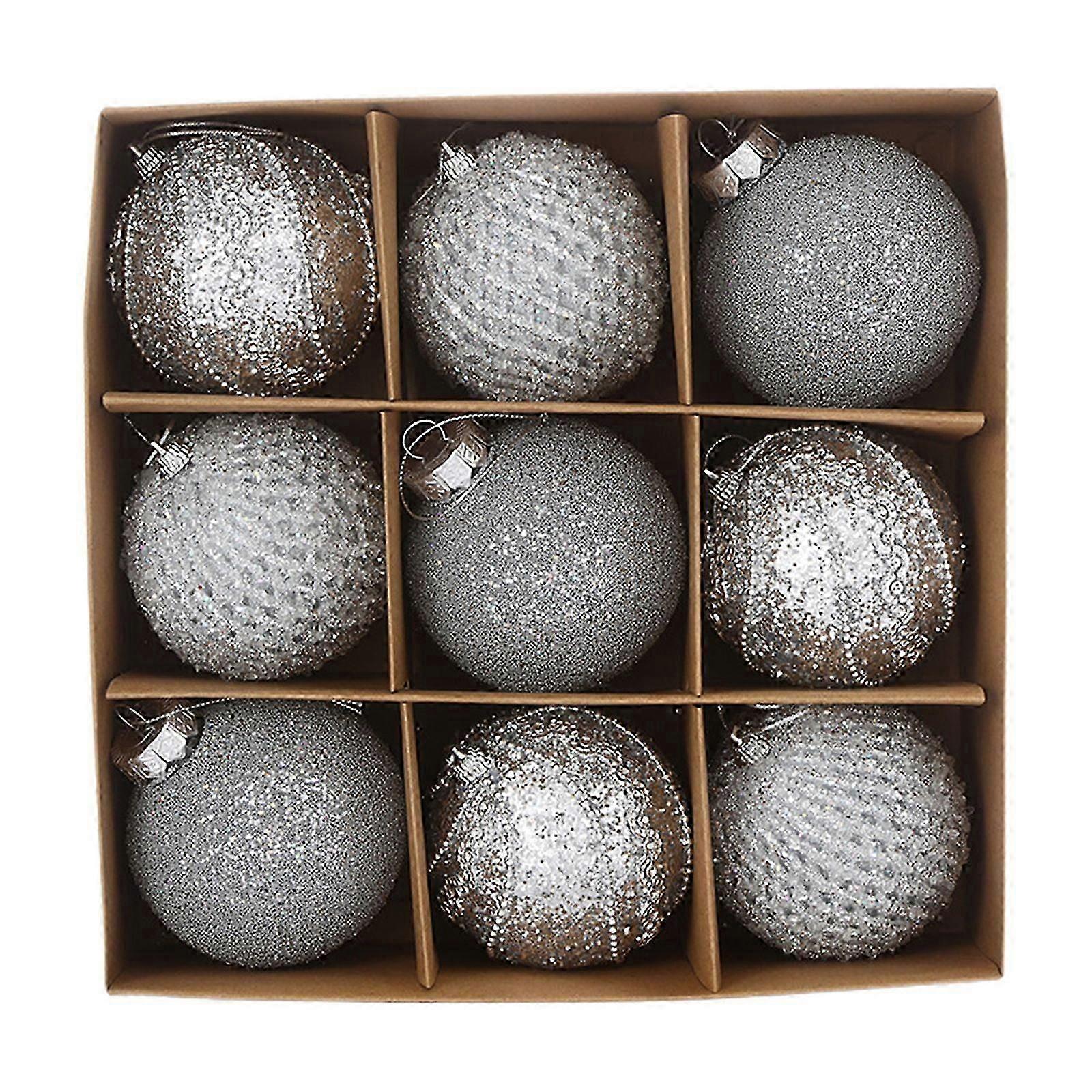 8cm/3.15inch Christmas Balls 9pcs Set Christmas Balls Sequins Lace Christmas Decoration Balls Christmas Gift Balls Christmas Tree Decoration, Silver
