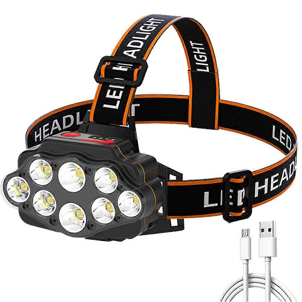 8LED Portable Headlight Light USB Rechargeable Waterproof Headlight Flashlight 2400mAh Power Display Fishing Camping Safety Flashlight